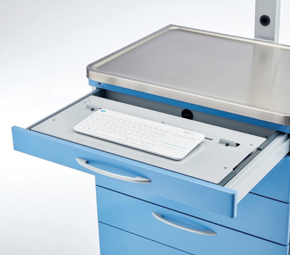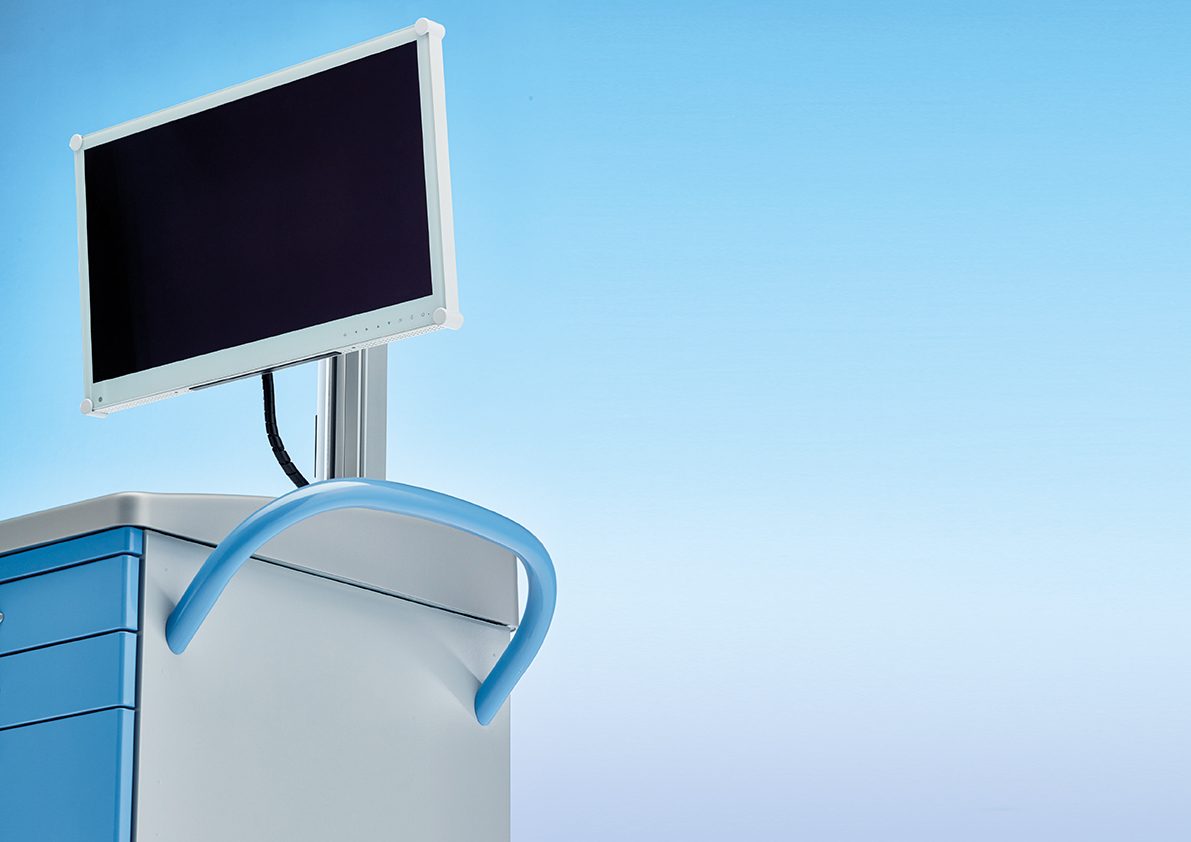 La calidad habitual de SCHMITZ en sus carros funcionales e ISO combinada con soluciones innovadoras para los retos de hoy en día. Así respondemos a la progresiva digitalización de hospitales y consultas.